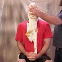 PieDaddy was surprised by latherface with a big sloppy cream pie to the face