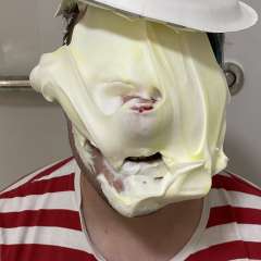 Splosherboy was surprised by SeymourTheClown with a big sloppy cream pie to the face
